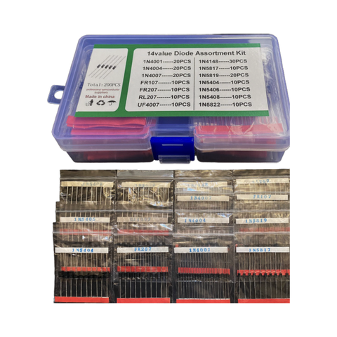 14 tipo interruptor/rectificador/kit de caja de muestra de diodo Schottky 1N5404 5822